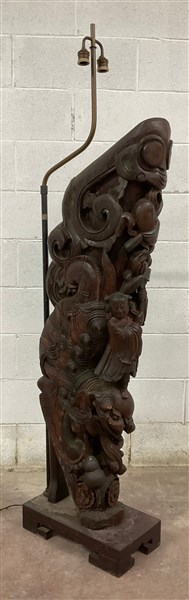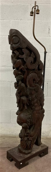 Grande fregio in legno intagliato montato a lampada Manifattura orientale, sec.