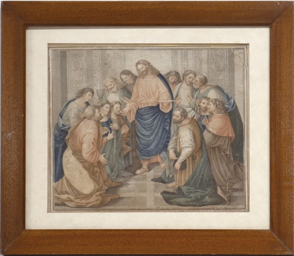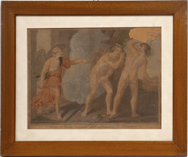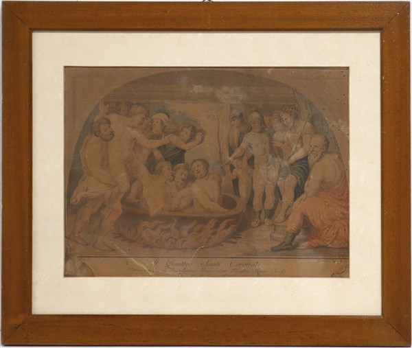 Lotto composto da tre incisioni a colori raffiguranti scene religiose e storich