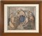 Lotto composto da tre incisioni a colori raffiguranti scene religiose e storiche e due raffiguranti ritratti, epoche e misure diverse, in cornici (difetti e mancanze)