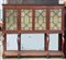 * Libreria in mogano a due corpi, parte superiore intagliata a fregi e scanalature, quattro ante a vetri con sagomette di forma geometrica, parte inferiore a giorno con sostegni anteriori di forma zoomorfa. (cm 221x195x40)