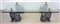 Tavolino da salotto composto da base con quattro leoni buddisti in metallo e piano in cristallo, sec. XX