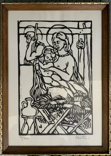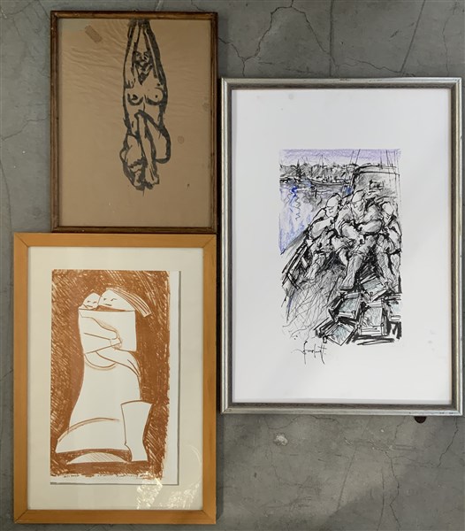 Lotto composto da due bozzetti raffiguranti nudi di donna e quattro stampe di autore, soggetto e misure diverse, in cornici
