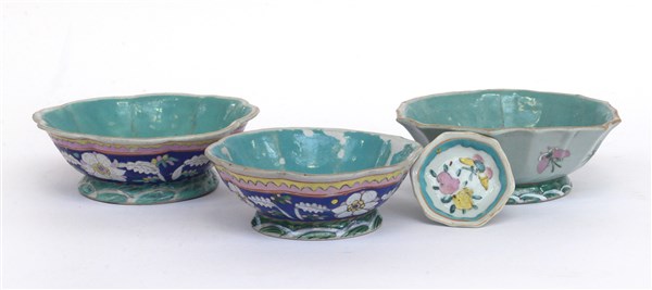 Quattro ciotolione in ceramica policroma di forma polilobata Manifattura orient