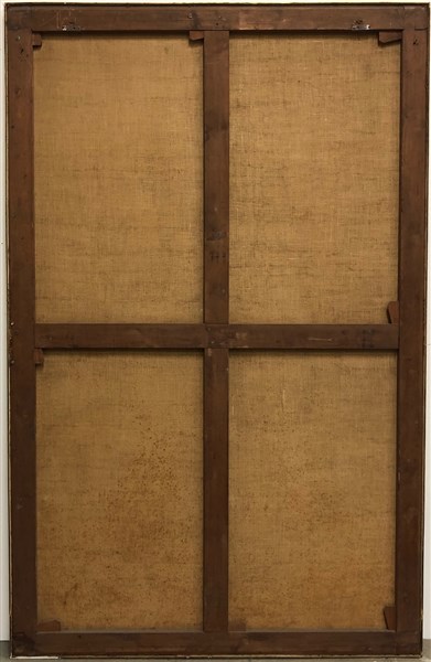 Scuola del secolo XVII, "Martirio di San Lorenzo", olio su tela (cm 211x135) (d