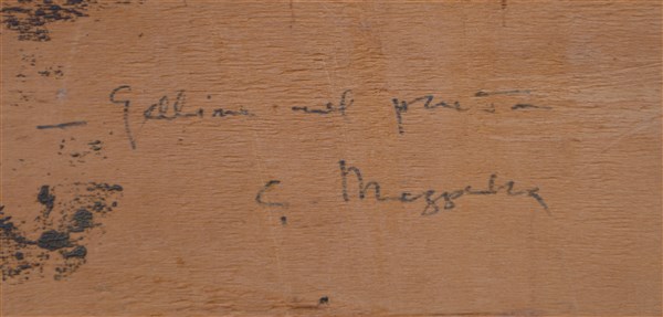 Carlo Mezzadra "Galline nel prato" olio su compensato (cm 40x50) Firmato in bass