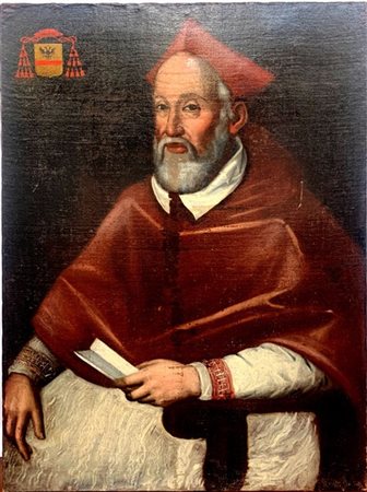 Ignoto, antico dipinto ad olio su tela raffigurante "Ritratto di cardinale" (cm 97x73)