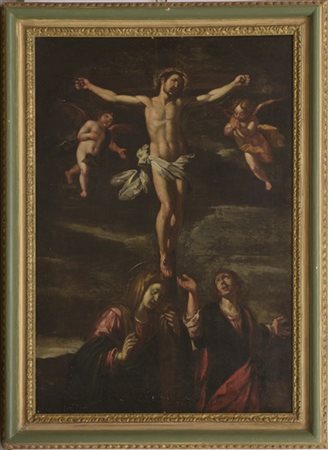 Ignoto, antico dipinto raffigurante "Cristo in croce", olio su tela (cm 98x68). In cornice