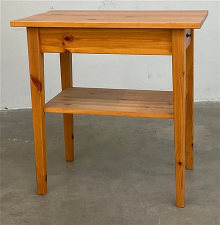 Tavolino moderno in abete a due ripiani con cassetto (cm 65x65x40) (difetti)