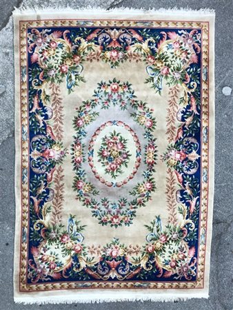 Tappeto Cina, secolo XX. Decoro francese con ovale su campo beige (cm 350x248)