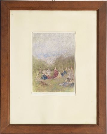 Pompeo Mariani "Baroccata" monotiopo (cm 33x23) Al retro: cartiglio del pittore