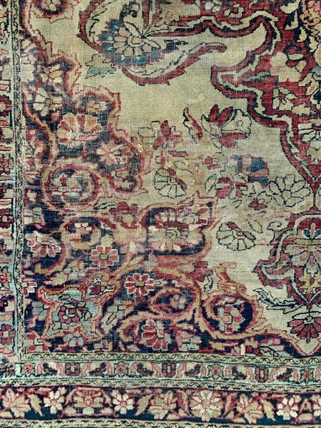 Tappeto Kirman, Persia, fine secolo XIX. Decoro con grande medaglione polilobat