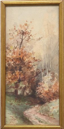 Ignoto "Bosco" acquerello su carta (cm 25.5x12) In cornice Provenienza Milano