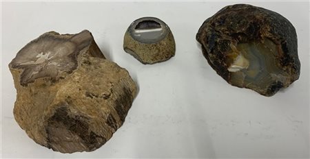 Lotto composto da un legno fossile e due sezioni di geodi, misure diverse