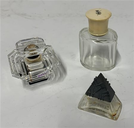 Lotto di tre boccette portaprofumo diverse in vetro (difetti)