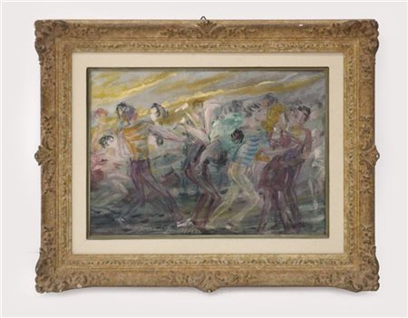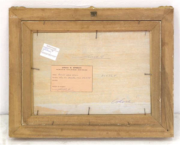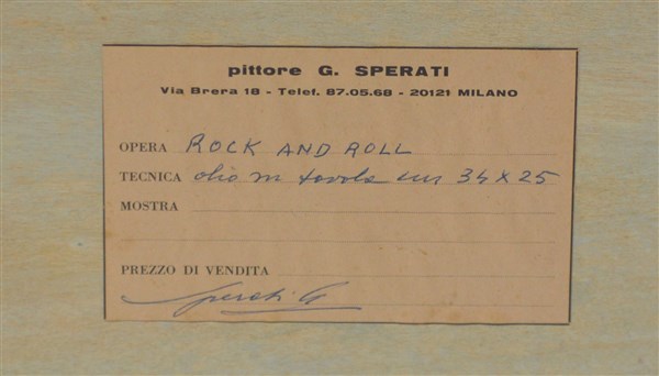 "Rock and roll" olio su tavola (cm 25x34) Firmato e datato in basso a sinistra. Al retro: firmato; cartiglio del pittore. In cornice