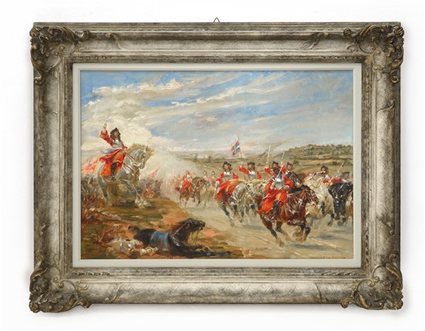 "Dopo la battaglia" olio su cartone (cm 42.5x61) Firmato e datato in basso a destra. Al retro: titolato. In cornice