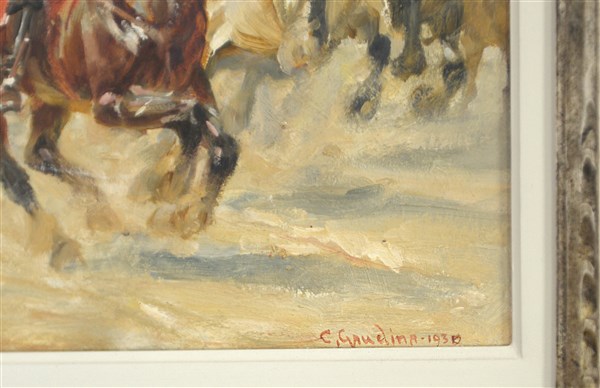 Carlo Gaudina "Dopo la battaglia" olio su cartone (cm 42.5x61) Firmato e datato