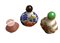 Lotto di tre snuff bottles di cui due in vetro con decoro a rilievo e una in qu
