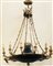 Lampadario "Impero" a tredici luci in bronzo e metallo brunito e dorato. Decora