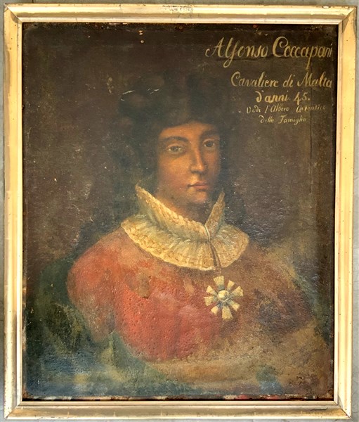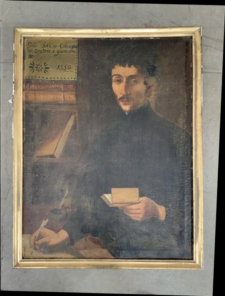 Ignoto "Ritratto di Giovanni Dazio Coccapani" e "Ritratto di Alfonso Coccapani" coppia di dipinti ad olio su tela (cm 85x64,5 e 75,5x63,5). Iscritti in alto con il nome dell'effigiato. In cornici