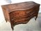 Antico comó a due cassetti lastronato e filettato, fronte e fianchi mossi. (cm