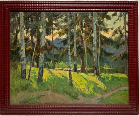 Firma indecifrata "Bosco" olio su tela (cm 70,5x90)Reca tracce di firma in basso a sinistra. In cornice