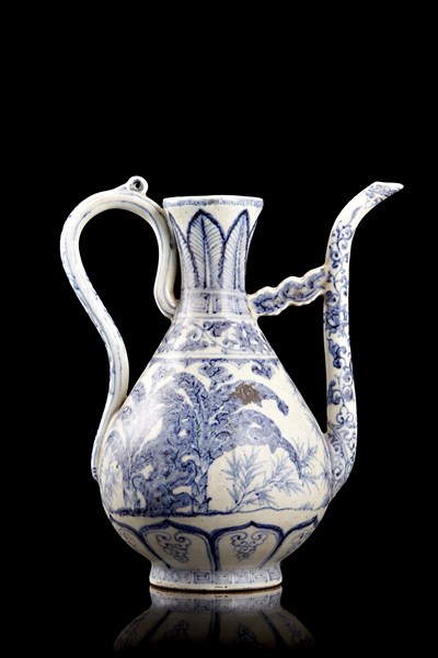 A blue and white porcelain ewer, in Ming 15th century style (defects)