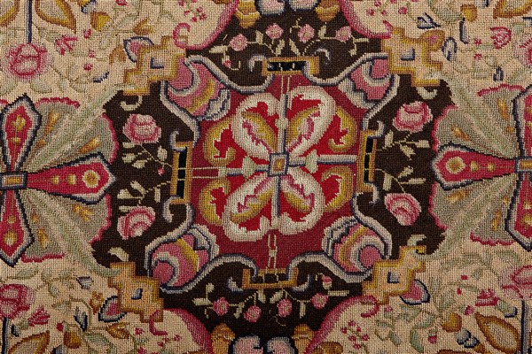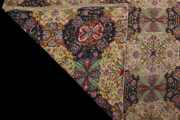 Large fragment of a wood and silk carpet, England, first half of 19th century. Decorated with Tudor roses and floral motifs (242x167 cm) (minor defects)
