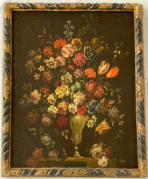Scuola del secolo XIX, composizione di fiori, olio su tela (cm 92x69) (difetti)