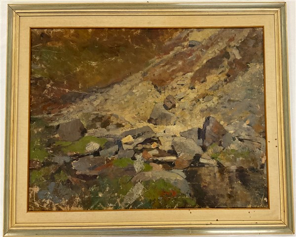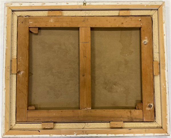 "Paese di montaga" olio su tela (cm 72x92) In cornice (difetti)