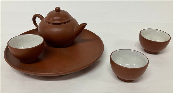 Piccolo servizio da tè composto da un vassoietto, tre tazzine, una piccola teiera