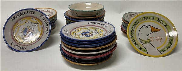 Manifattura di Vietri. Lotto composto da trentaquattro piatti del buon ricordo,
