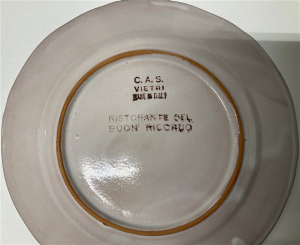 Manifattura di Vietri. Lotto composto da trentaquattro piatti del buon ricordo, uniti a una ciotola di manifattura Deruta (difetti)