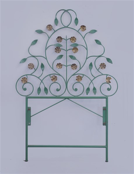 Testata da letto di forma mossa in ferro battuto verde decorata con in fiori in
