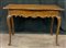 Tavolo da centro in noce con fasce intagliate a volute e fiori, gambe e piano d