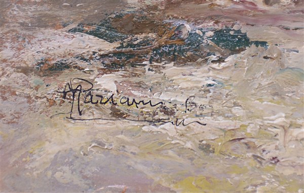 Ignoto del XX Secolo "Marina con scogliera" olio su cartone (cm 28x43) reca isc
