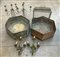 Lotto composto da un portacandele, due fioriere in ottone, una coppia di candel