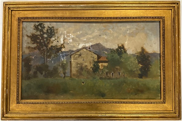 "Paesaggio lombardo" olio su tela (cm 44x76) In cornice (gravi difetti)