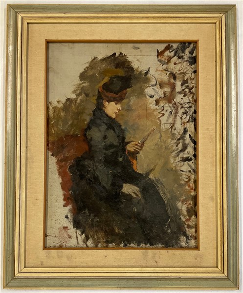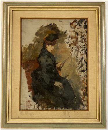 Uberto Dell' Orto "La lettura"bozzetto ad olio su tela (cm 50x38.5) In cornice