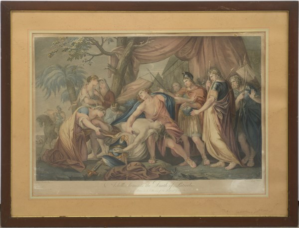 Domenico Cunego "Achilles laments the death of Patroclus" stampa a colori da Gavin Hamilton (cm 63x45) In cornice (difetti)