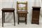 Lotto composto da un comodino, un tavolino da lavoro e uno d'appoggio in legno, uniti ad un'appendiabiti in bamboo, misure diverse (difetti)