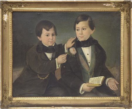 Scuola del secolo XIX "Fratelli" olio su tela (cm 63x80) In cornice in legno e