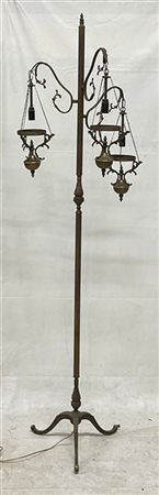 Lampada da terra con tre bracci sagomati e luci pendenti a "lanterna" (h cm 103) (difetti e mancanze)