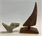 Lotto composto da una scultura in travertino raffigurate un rapace, fratelli Mannelli per Marble Art con etichetta al verso (h cm 13,5), ed una scultura di ignoto in terracotta raffigurante una vela su base in legno (h tot cm 42)