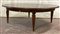 Tavolo da salotto con piano circolare lastronato in mogano, gambe rastremate. Secolo XIX (d. cm 144xh. cm 49) (difetti)