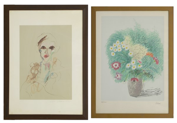 Lotto composto da due litografie a colori di seoggetti e misure diverse, firmate e numerate in basso a matita