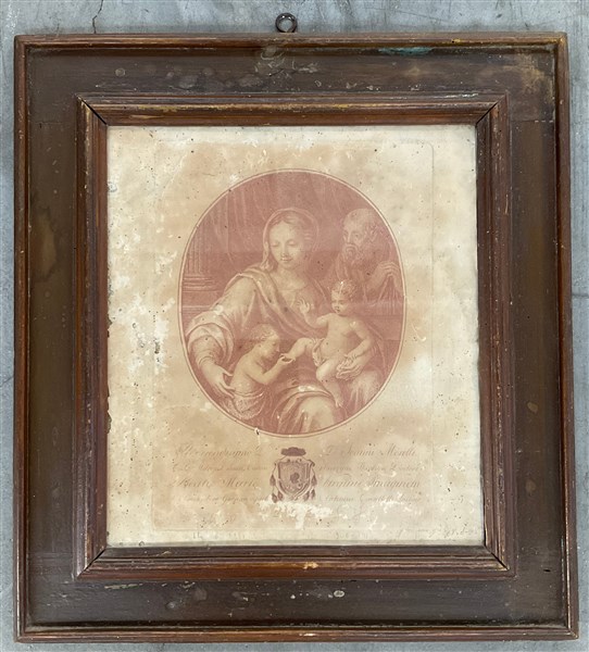 Lotto composto da una cornice contenente un'incisione raffigurante Sacra Famigl