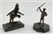 Lotto di due sculture in bronzo: una firmata alla base raffigurante due ragazzi che giocano, e una con fanciullo che solleva un bastone poggianti su basi in marmo (h max cm 14)