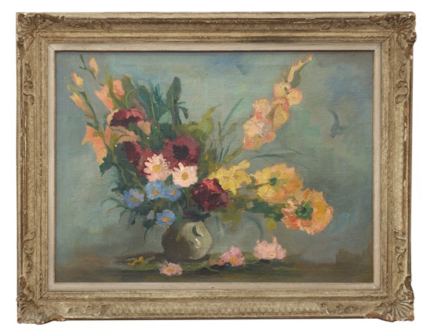 "Vaso con fiori" olio su tela (cm 60x80) firmato in basso a sinistra, in cornice