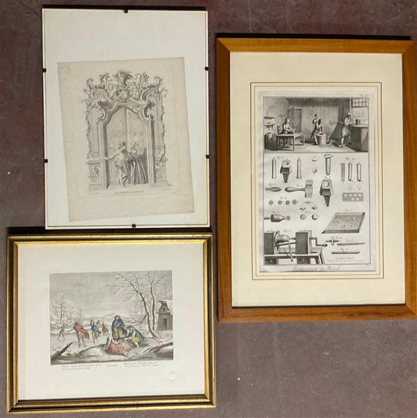Lotto composto da cinque stampe diverse in cornice tra cui un ritratto di Dante Alighieri del sec. XIX ed un'incisione da Diderot D'Alambert. Misure diverse, in cornici